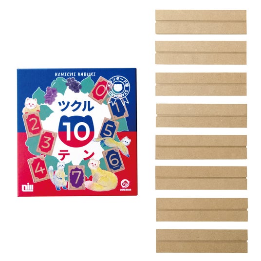 3枚組の特殊コンボ(数字の圧縮)を駆使し、いち早く手札8枚の数字の合計をちょうど《10》にすることを目指す、数理パズル的なボードゲームです。