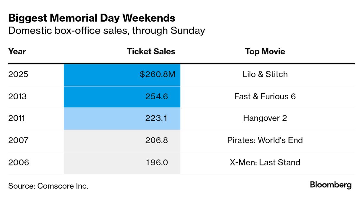 原題:‘Lilo & Stitch,’ ‘Mission: Impossible’ Fuel Memorial Day Record(抜粋)