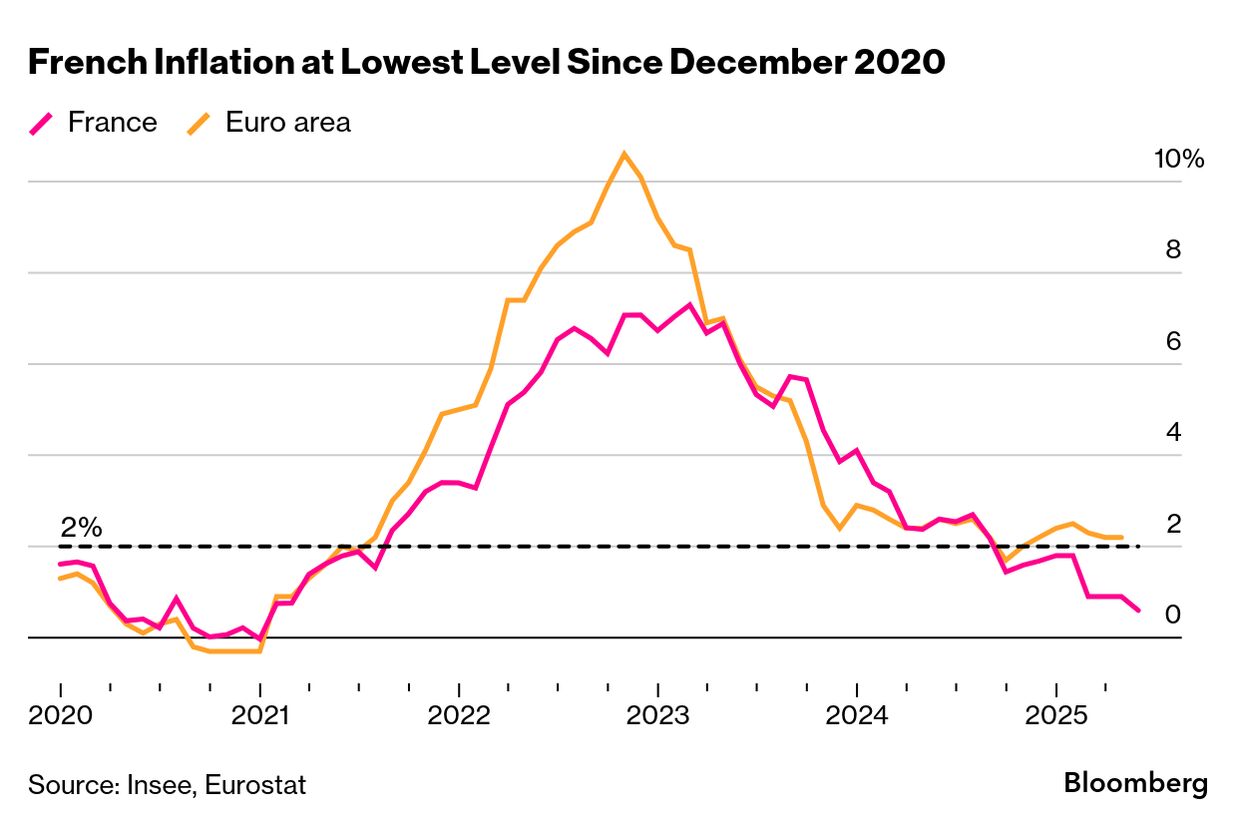 フランスのインフレ率は5月に欧州中央銀行(ECB)の目標である2%をさらに下回り、4年半ぶりの低水準となった。追加利下げを求める声が強まる可能性が高い。