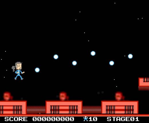 自機はオートショットで、十字キーで操作、A/B ボタンでジャンプ。同サークルのシューティングゲーム「HARATYLER」のボスデータが使われているようだ。