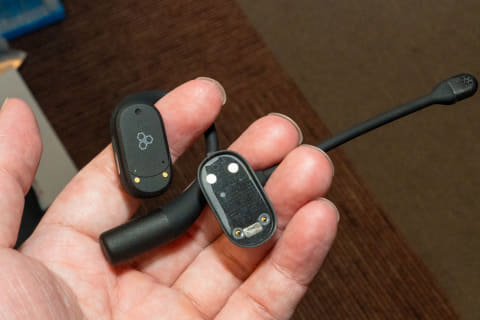 着脱できるマイクを搭載するだけでなく、final初のオープン型完全ワイヤレスとユニークな設計の「KDT3000」は、「ながら聴き」イヤフォンの課題である、コンテンツの音量による周囲の音の聞き取りづらさや、通話用マイクの性能を解決した製品。とくに高性能マイクが特徴となっており、スタッフとの通話を通じたデモ体験を用意している。