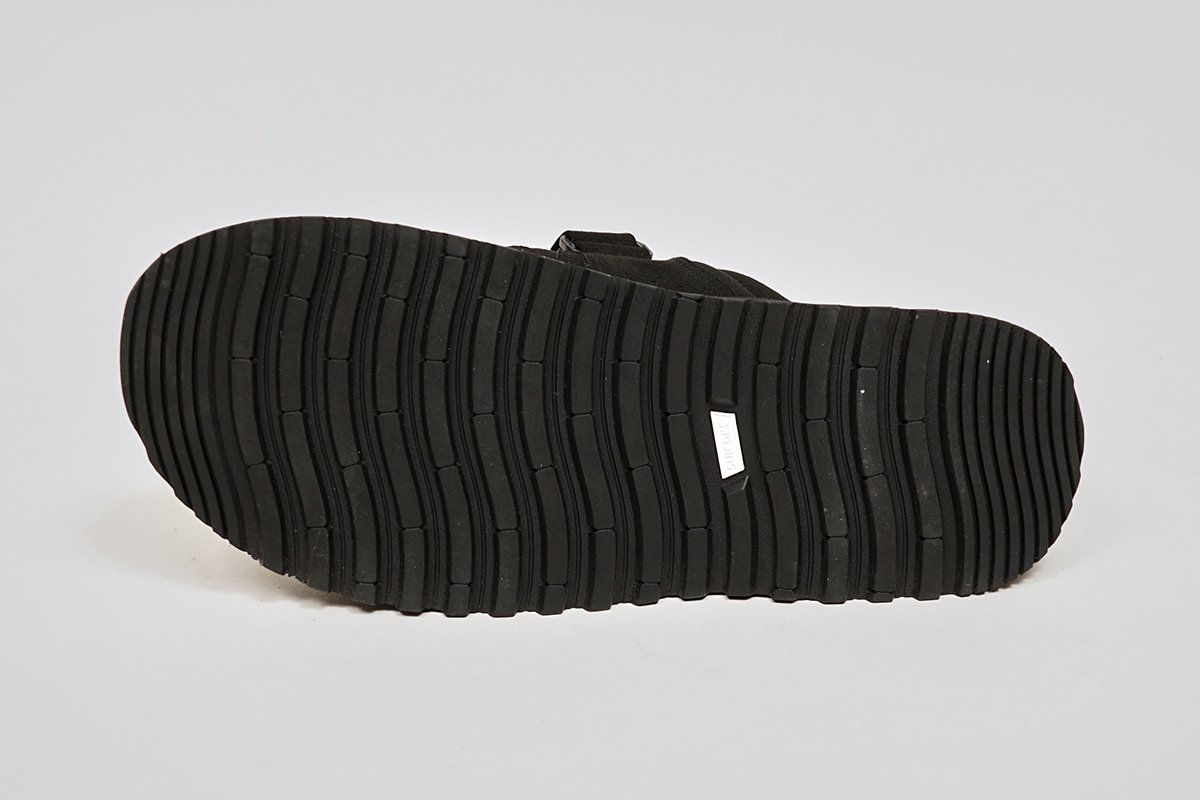 ベースとなったのは80’s クラシックハイキングブーツから着想を得た2ストラップサンダル「MOGI」。アッパーにシンセティックスエードを採用し、フットベッドはビブラムを使用しさらにベルト幅をやや細くすることで、ぽってりシルエットの中にシックな印象をプラス。適度な茶目っ気アピールにもお役立ち。