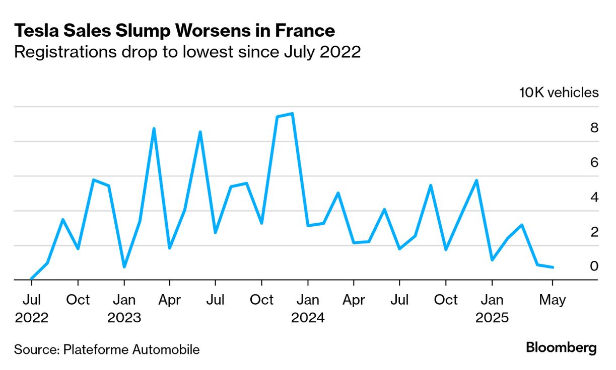 原題:Tesla Sales Plunge 67% to an Almost Three-Year Low in France(抜粋)