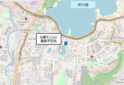 ムンバイにおいては、本事業のパートナーであるHinesと共同で分譲マンション事業にも参画しています。同事業は、ムンバイ中心部のポワイ湖に隣接する約13,000平方メートルの敷地に、マンション6棟(20階建て、総戸数321戸)を建設する計画です。ムンバイ中心部の一つであるBKC地区から約7キロメートルに位置し、約1,000,000平方メートルのヒラナンダニタウンシップ至近で生活利便性が高く、北側のポワイ湖に向かって良好な眺望が期待できる優良な立地にあります。恵まれた立地を生かし、順調に増加する上位中間層をターゲットに開発を進めます。