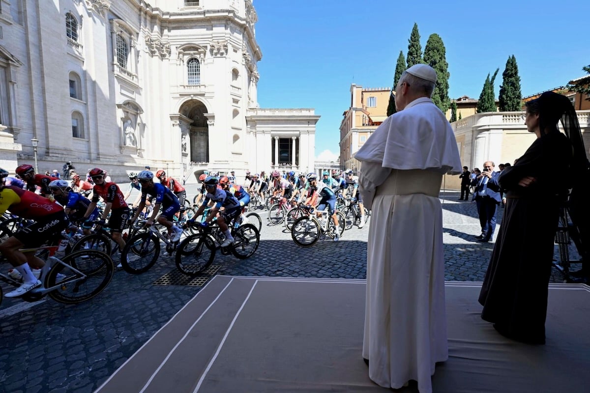 レオ14世の見送りを受ける選手たち photo:RCS Sport