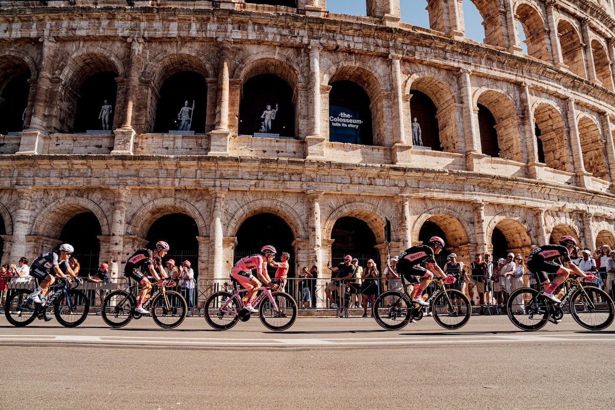 3週間に及んだジロ・デ・イタリアの最終日は、今年も首都ローマで締めくくられる。前日のフィニッシュ地点から飛行機で移動してきた選手たちは、連日よりも遅い現地時間の午後3時半にスタート。そこから3週間に渡る戦いを互いに労いながら、パレード走行を楽しむ。