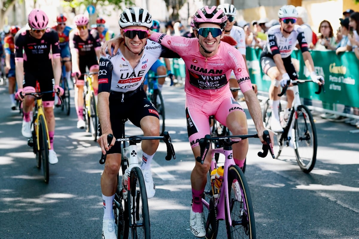 イェーツは双子の兄弟であるアダム・イェーツ(イギリス、UAEチームエミレーツXRG)と肩を組み、ファンやカメラマンの期待に応える。また前日にマリアローザを失いながらも初出場のジロで総合2位、そしてマリアビアンカ(ヤングライダー賞ジャージ)を獲得したイサーク・デルトロ(メキシコ、UAEチームエミレーツXRG)がオフィシャルカーに乗るヴィンチェンツォ・ニバリと言葉を交わすシーンも。