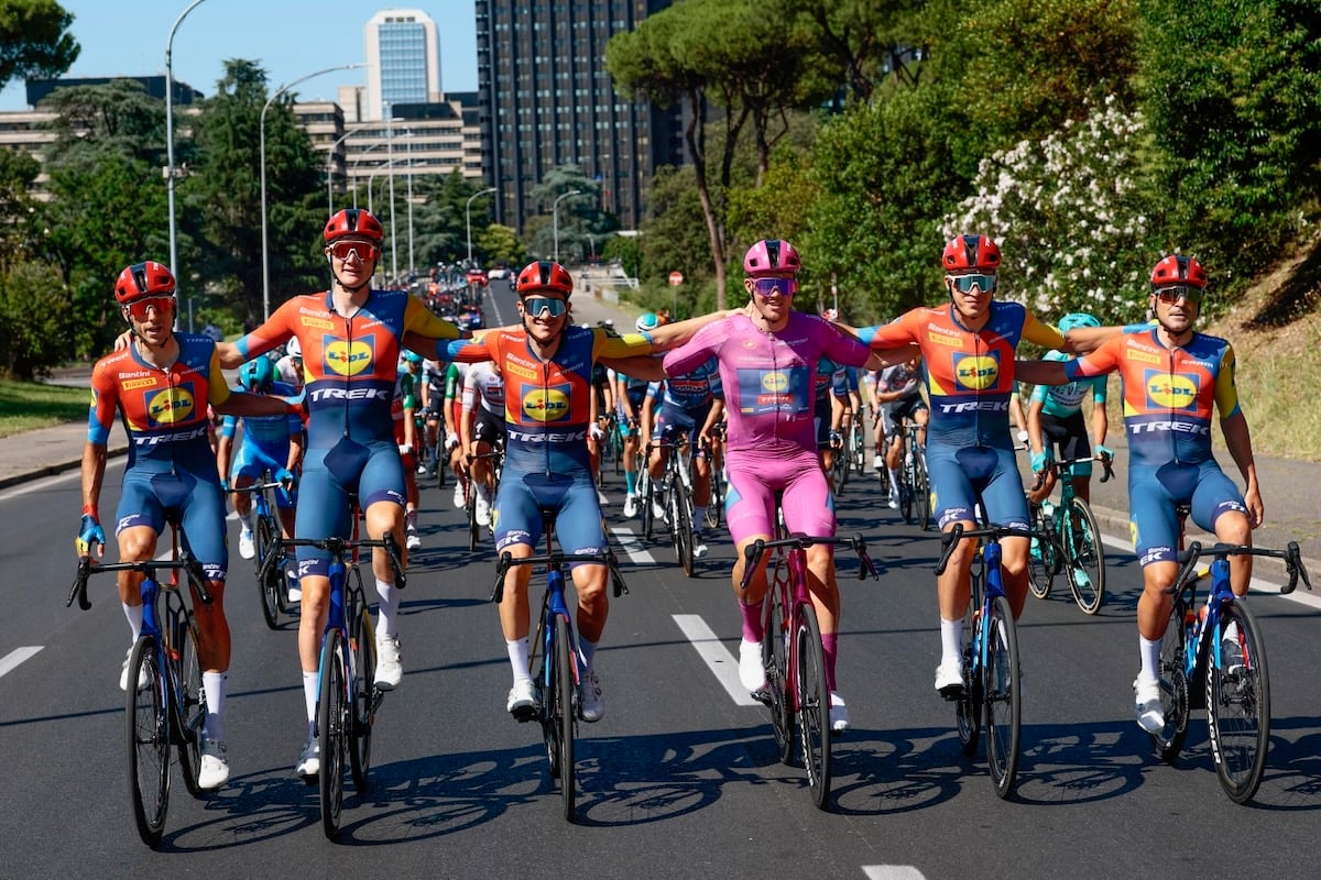 ステージ優勝した初日から最後までマリアチクラミーノ(ポイント賞ジャージ)を守り続けたマッズ・ピーダスン(デンマーク、リドル・トレック)は、チームメイトと横一列に並び肩を組む。ピーダスン自身は区間4勝を飾り、チームは総合エースのジュリオ・チッコーネ(イタリア)をリタイアで欠きながらも、ダーン・ホーレ(オランダ)は個人タイムトライアルで勝利。またカルロス・ベローナ(スペイン)も逃げ切り勝利を収めるなど、区間6勝する大成功の大会となった。
