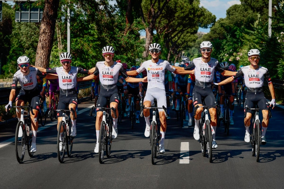長期に渡りイサーク・デルトロ(メキシコ)がマリアローザを纏い、リーダーチームとしてレースを進めたUAEチームエミレーツXRG photo:CorVos