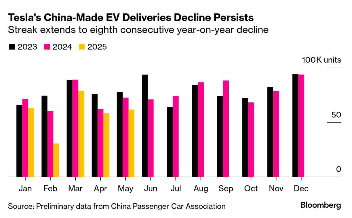 原題:Tesla’s China Shipments Extend Slump, Bucking Broader Sales Boom (抜粋)