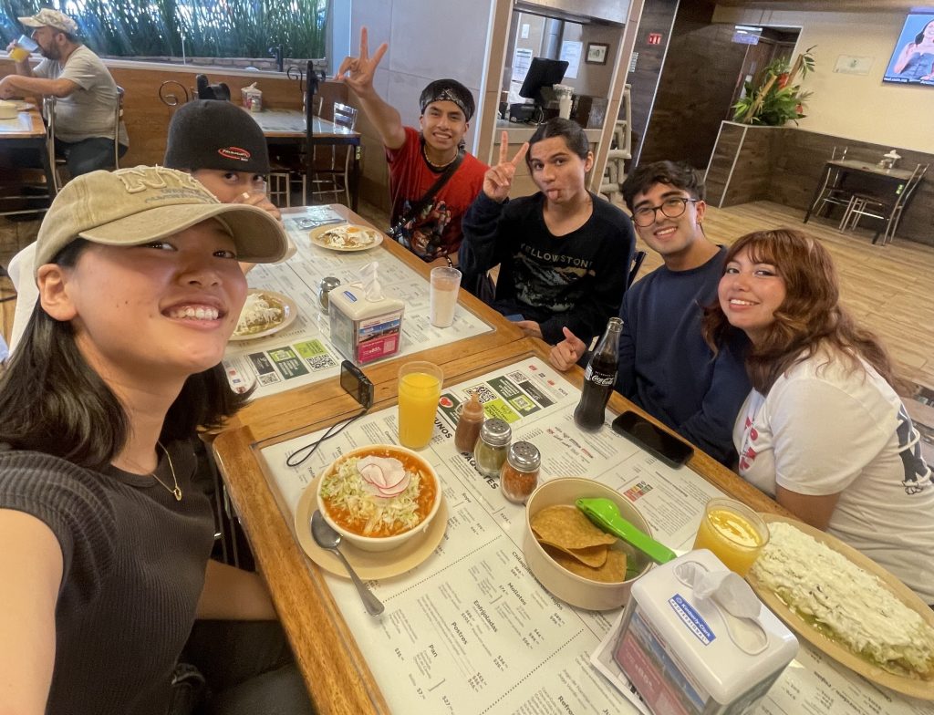 ▲クラスメイトとご飯を食べに行きました。私(左)が頼んだのはポソレという野菜とお肉たっぷりのスープです