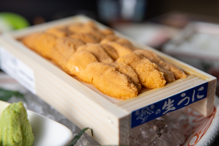 使用する生うには、ミョウバン不使用で、身が大きく優しい甘みが特徴。殻付き雲丹8個分を、宮城県産の海苔や塩竈の藻塩、川敬醸造醤油、黄身醤油、宮城県産米とともに、夏のみやぎづくしが味わえます。