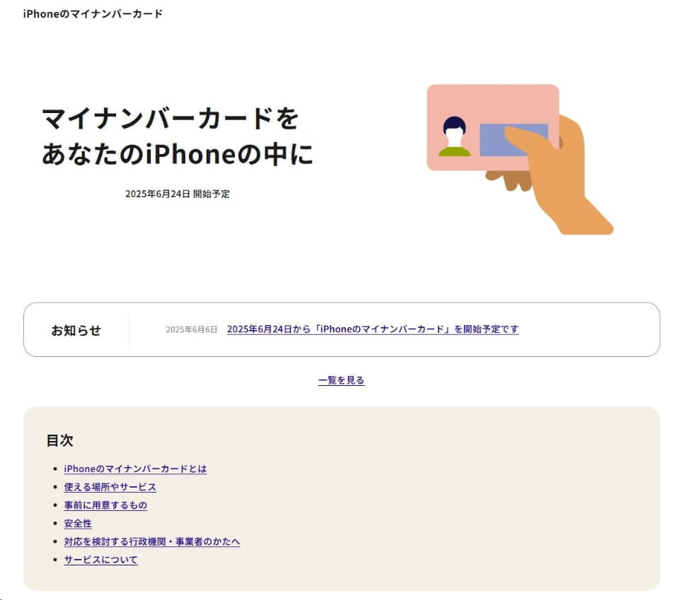 デジタル庁は、iPhoneへのマイナンバーカード搭載「iPhoneのマイナンバーカード」を、6月24日(予定)より開始すると発表した。