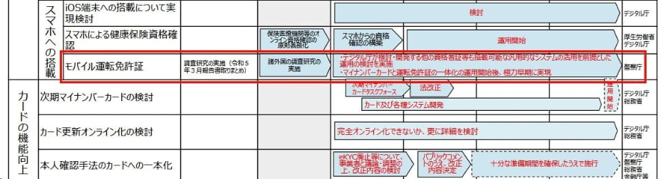 ただ、デジタル庁が掲げる「デジタル社会の実現に向けた重点計画」において、モバイル運転免許証を「マイナンバーカードと運転免許証の一体化の運用開始後、極力早期に実現」するとされており、警察庁と連携して早期実現に向けて検討を進めているとのこと。
