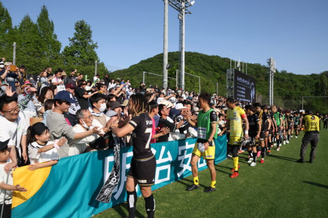 試合終了後、ハイタッチしながらスタジアムを周回します!