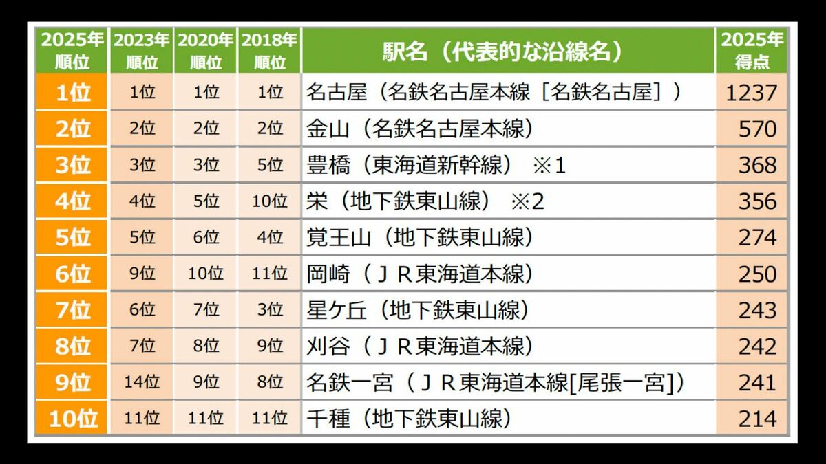 愛知県の“住みたい街・駅”ランキング 1位は…4回連続同じ駅 4位は「栄」 3位は「豊橋」 2位は「金山」