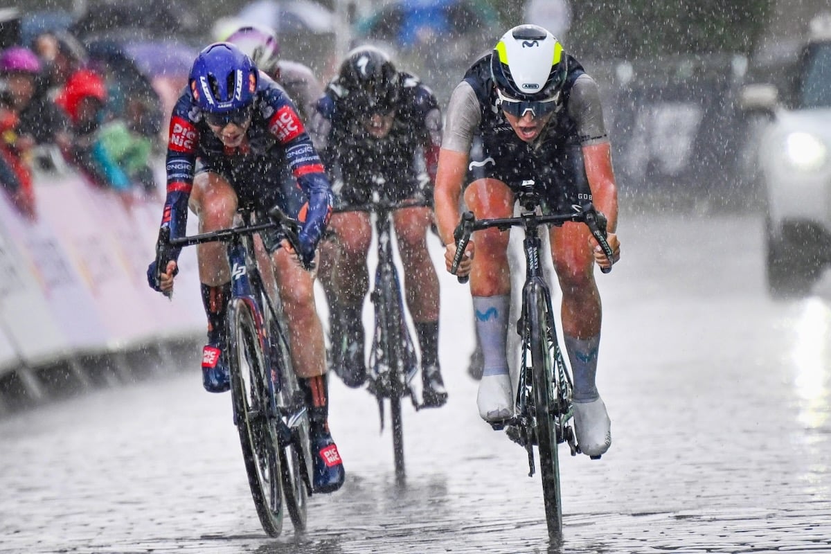 序盤からなかなか逃げが形成されず、40km地点の2つ目のカテゴリー山岳でアムベル・クラーク(オランダ、FDJスエズ)が仕掛ける。これは決まらなかったものの、その後アタックが続いたため、メイン集団から遅れる選手が続出。強い雨が降り始めるなか、残り56km地点の下りで前日勝者であるマーラ・ロルダン(カナダ、ピクニック・ポストNL)が落車した。