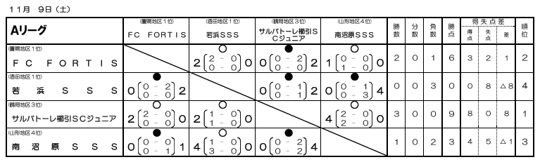 1位:サルバトーレ櫛引SCジュニア、2位:FC FORTIS、3位:南沼原SSS、4位:若浜SSS