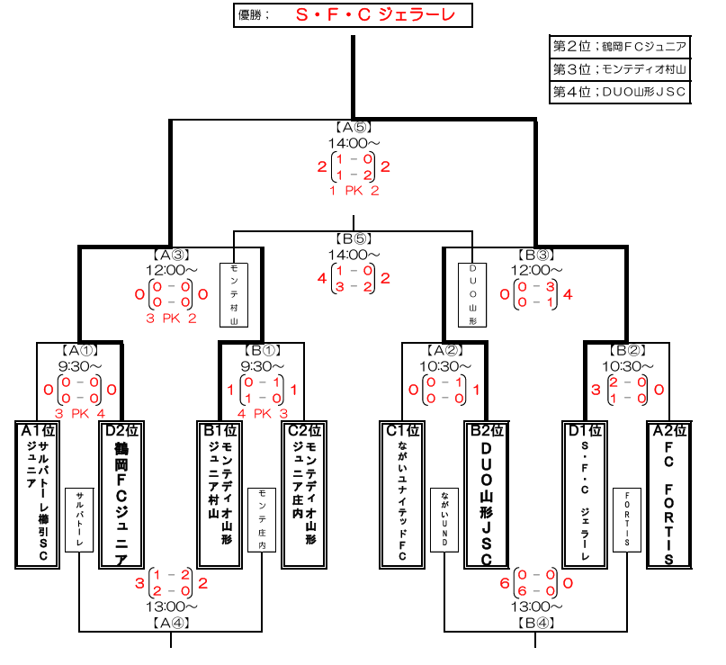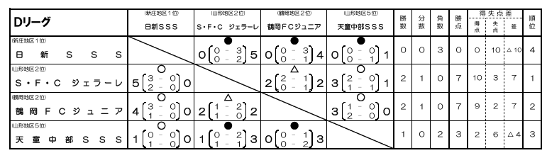 1位:S・F・Cジェラーレ、2位:鶴岡FCジュニア、3位:天童中部SSS、4位:日新SSS