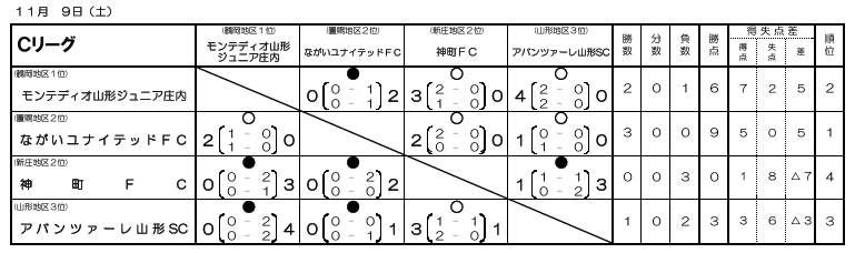 1位:ながいユナイテッドFC、、2位:モンテディオ山形ジュニア庄内、3位:アバンツァーレ山形SC、4位:神町FC