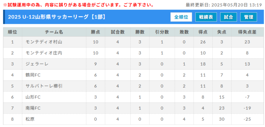 2024年度 JFA U-12山形県サッカーリーグ 優勝はモンテディオ村山!最終結果掲載!