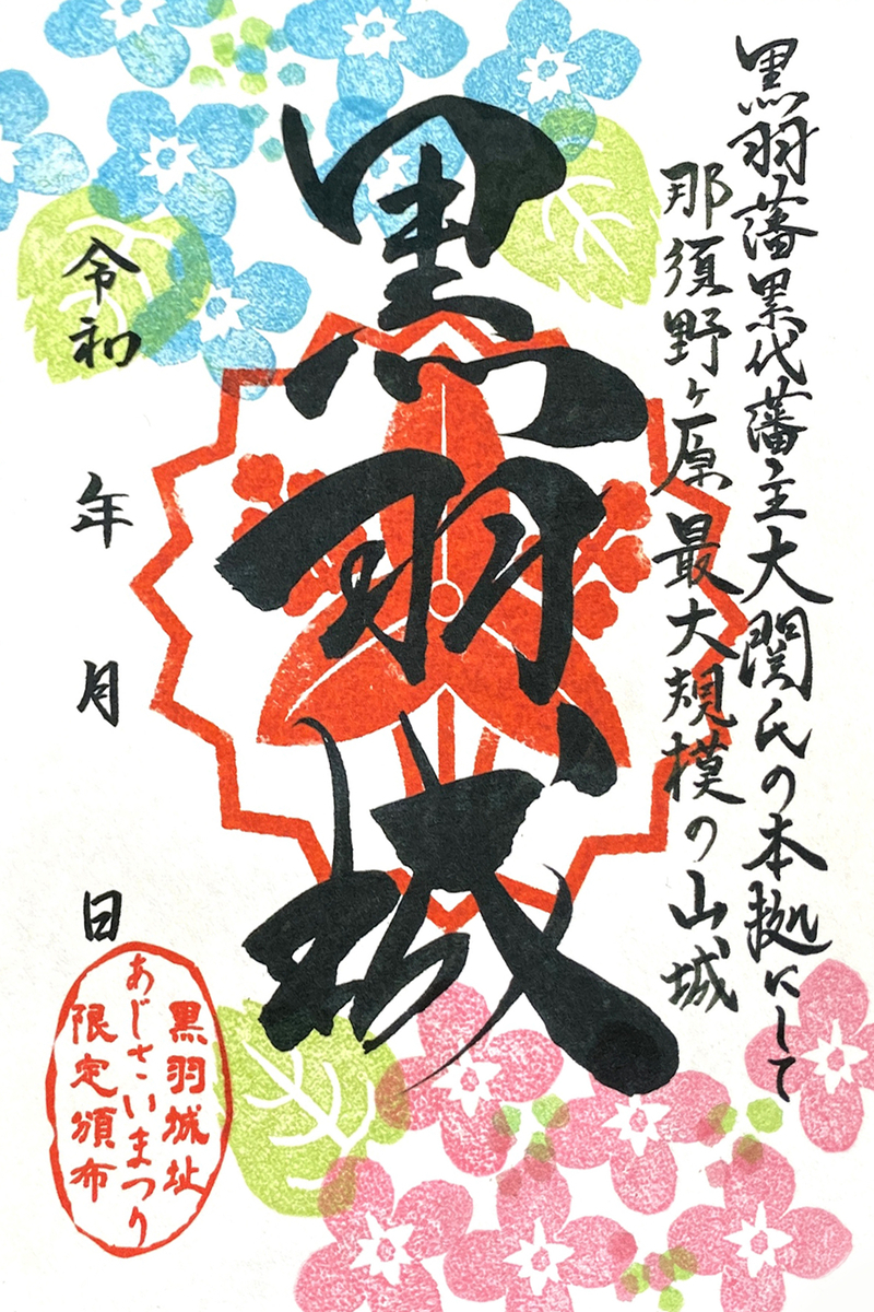 6月28日(土)と6月29日(日)に栃木県大田原市で開催される「黒羽城址あじさいまつり」の会場において黒羽城の新作御城印「黒羽城址あじさいまつり限定頒布」が発売されます。1枚500円。