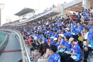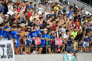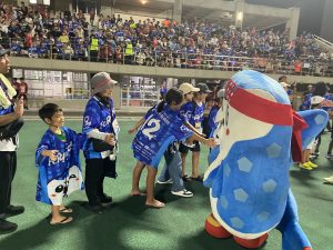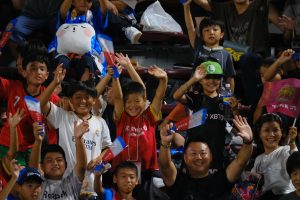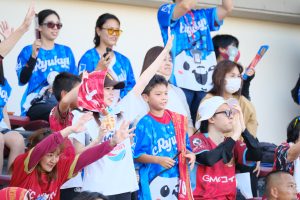 厚生労働省の「人口動態統計」によると、出生率が50年連続で全国トップを誇る沖縄県。FC琉球は、ホームゲーム全試合に小学生以下の子どもたちを無料招待する「キッズフリーパス」プロジェクトを実施しており、スタジアムには毎試合子どもたちの声援が響いています。