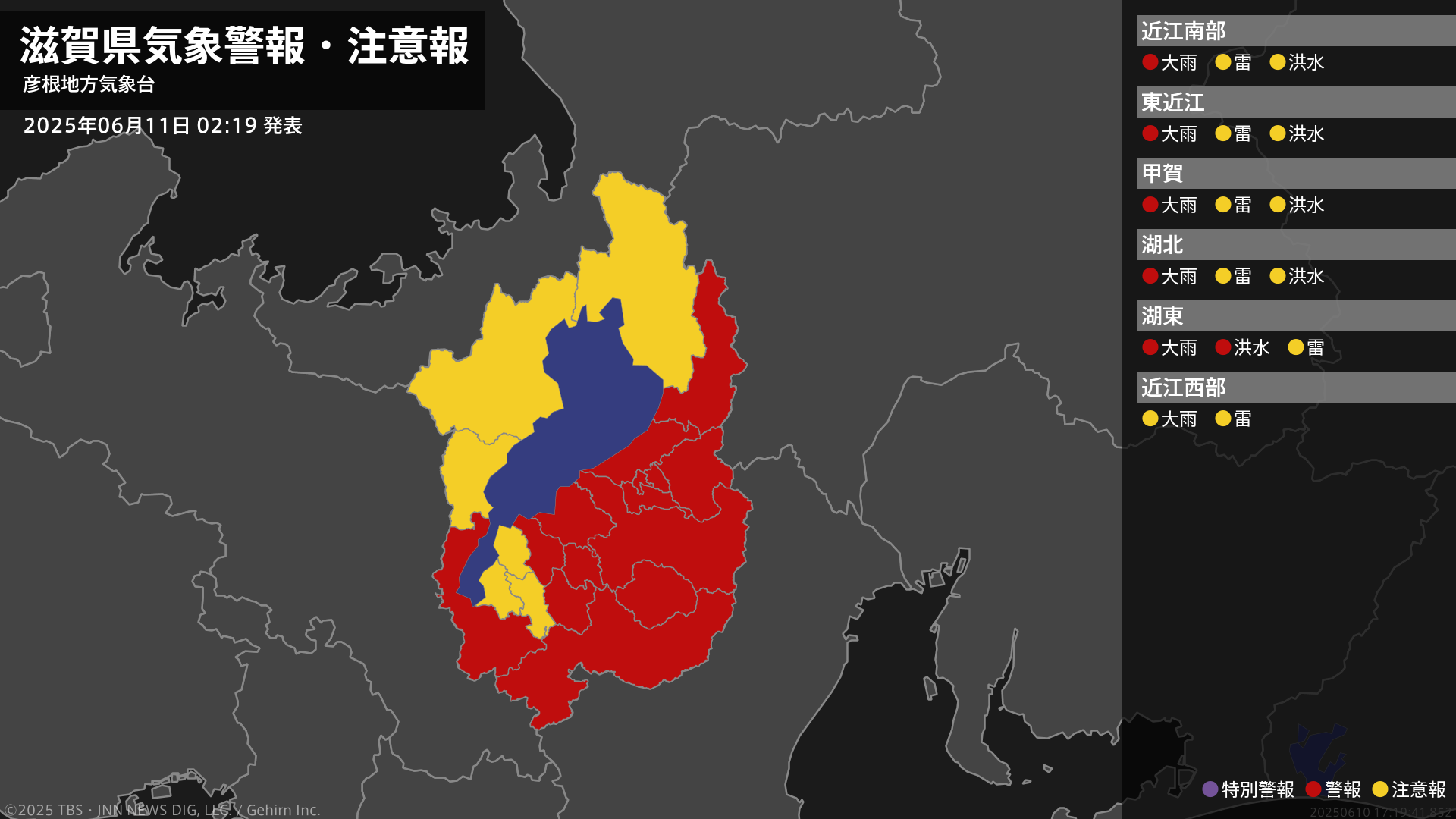 【大雨警報】滋賀県・甲賀市、湖南市、日野町に発表 11日02:19時点