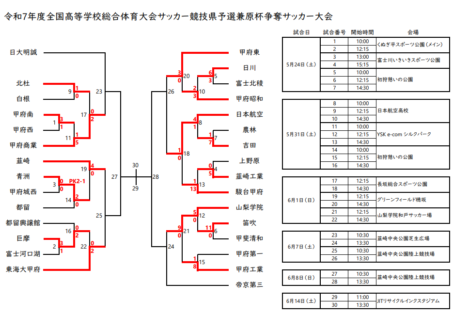 2025年度 全国高校総体サッカー競技 山梨県予選(インハイ予選)