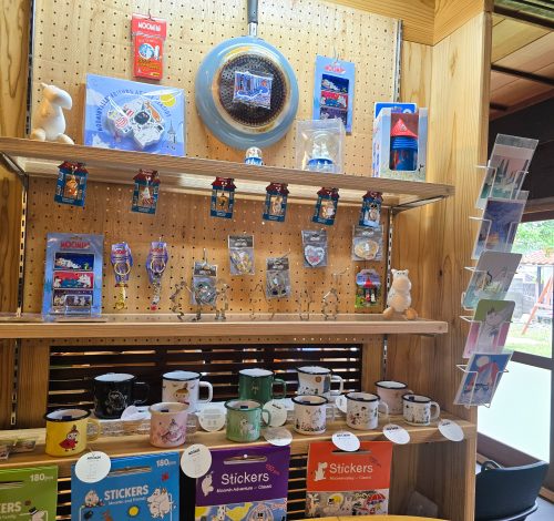 店内の棚の一角に並ぶのは、フィンランドを代表するムーミンの雑貨。