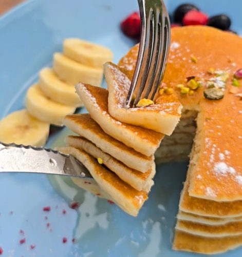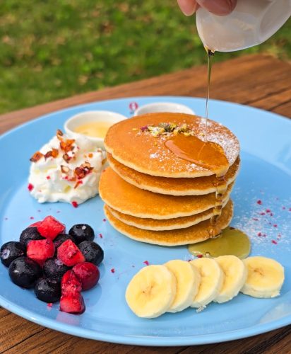 パンケーキの生地には、北欧料理ではお馴染みのオートミールを使用しています。オートミールは、食物繊維やビタミンなどが豊富なヘルシーフードです。