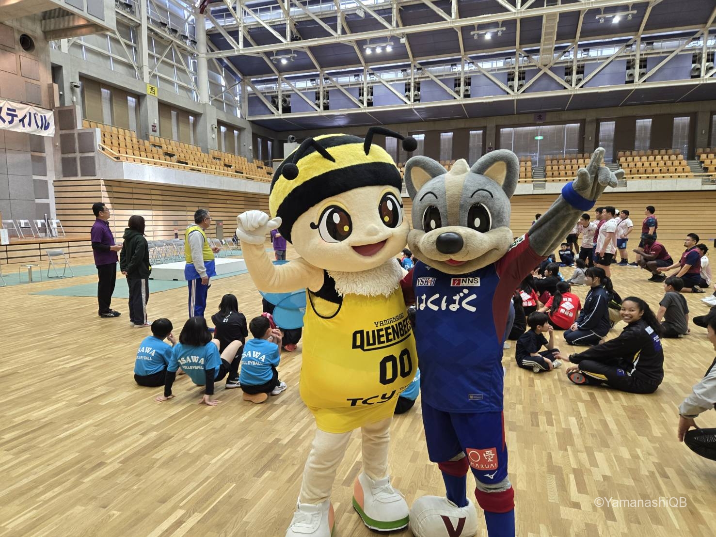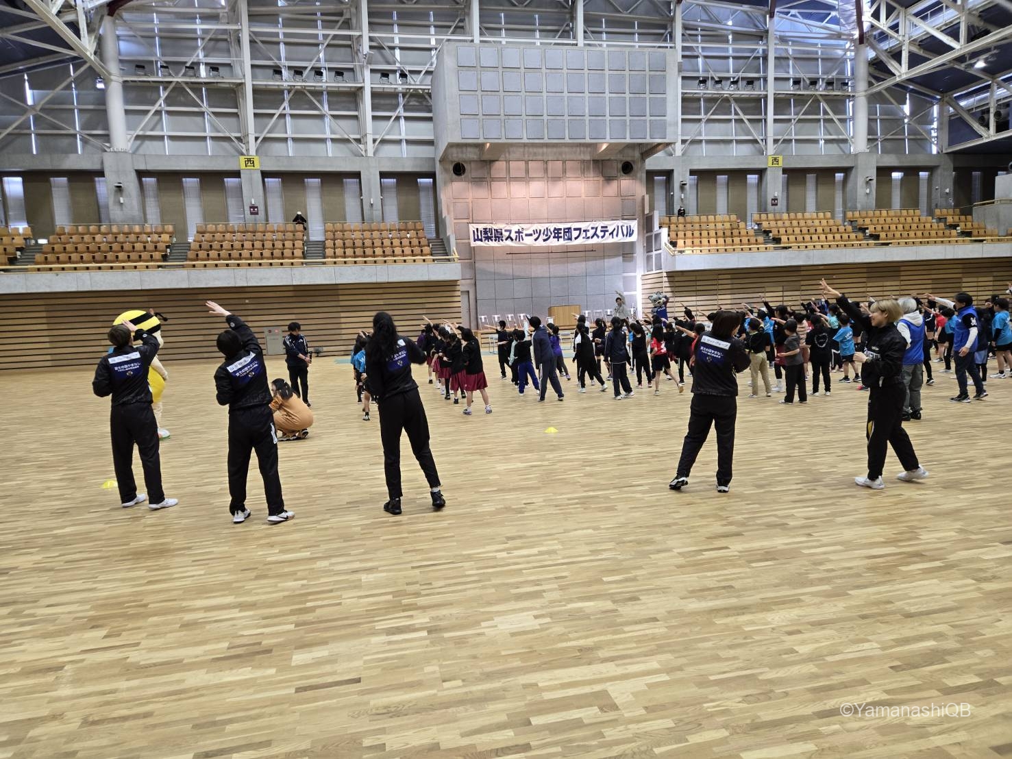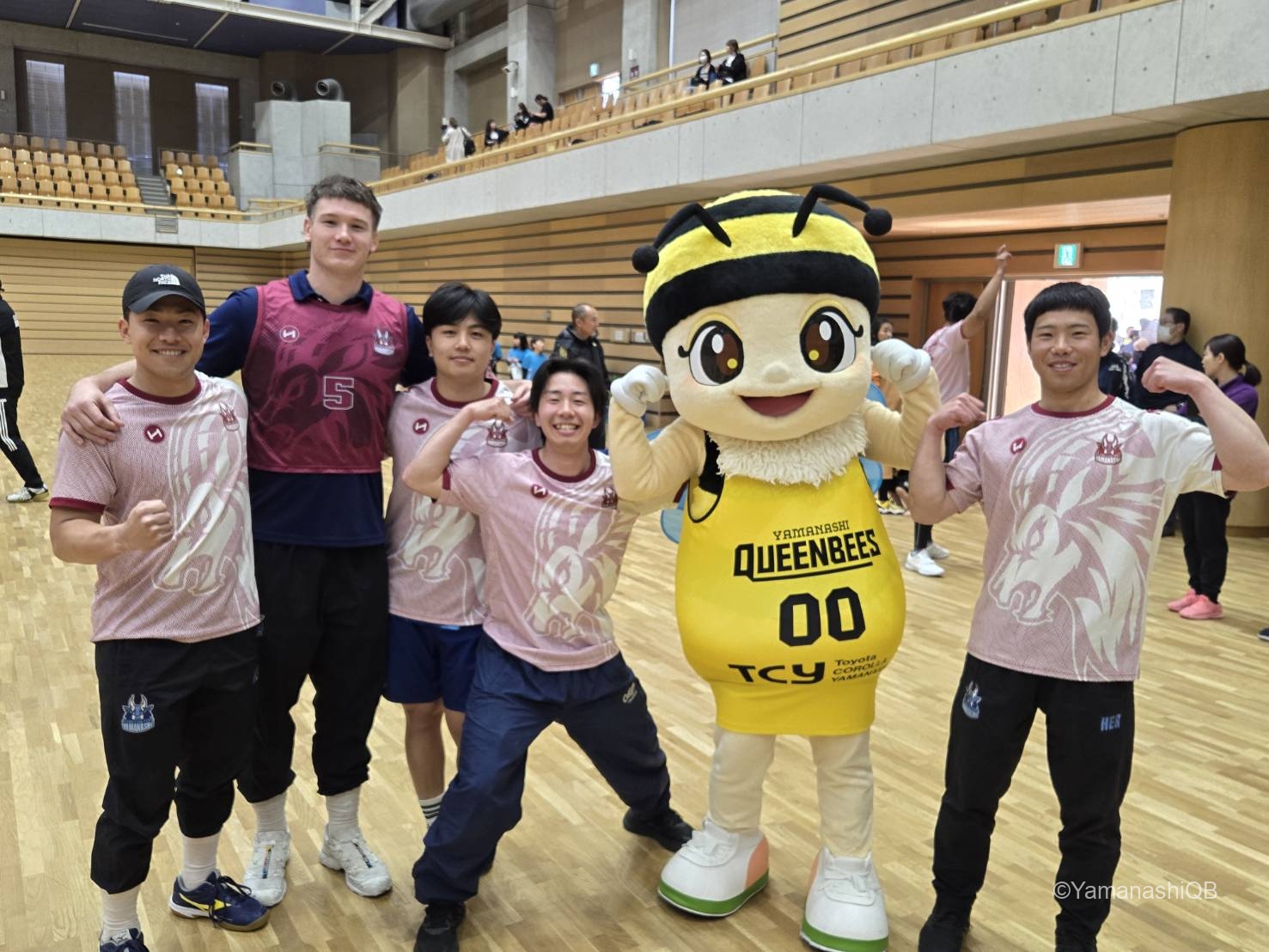news BLOG 第18回山梨県スポーツ少年団フェスティバル 2025年04月17日 山梨クィーンビーズ 4月12日(土)に小瀬スポーツ公園武道館にて開催された 第18回 山梨県スポーツ少年団フェスティバルに、高田選手・濱西選手・中澤選手・土田選手・上長選手の5名とビーちゃんが参加しました! 鬼ごっこやダンス、レクリエーションを行い、体を動かしながら約100名の子どもたちと親睦を深めました。また、山梨クリーンファイターズの選手の方々やヴァンくんとも交流を行いました! QB Wleage Wリーグ Yamanashi バスケットボール 女子プロバスケットボールリーグ 山梨 山梨クィーンビーズ 山梨県