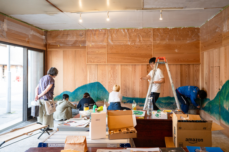 地域の方を巻き込んだ制作の様子 @秋田県五城目