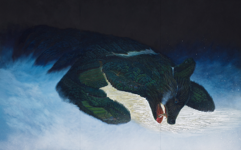 狩猟者として山に、実際の経験を重ね、感じたことを絵画作品に落とし込む。だからこそ、永沢さんの描く作品には、悠々とした空気を纏いながらも、強く引き込まれる不思議な魅力があり、鋭く伝わる意志があるように感じられます。