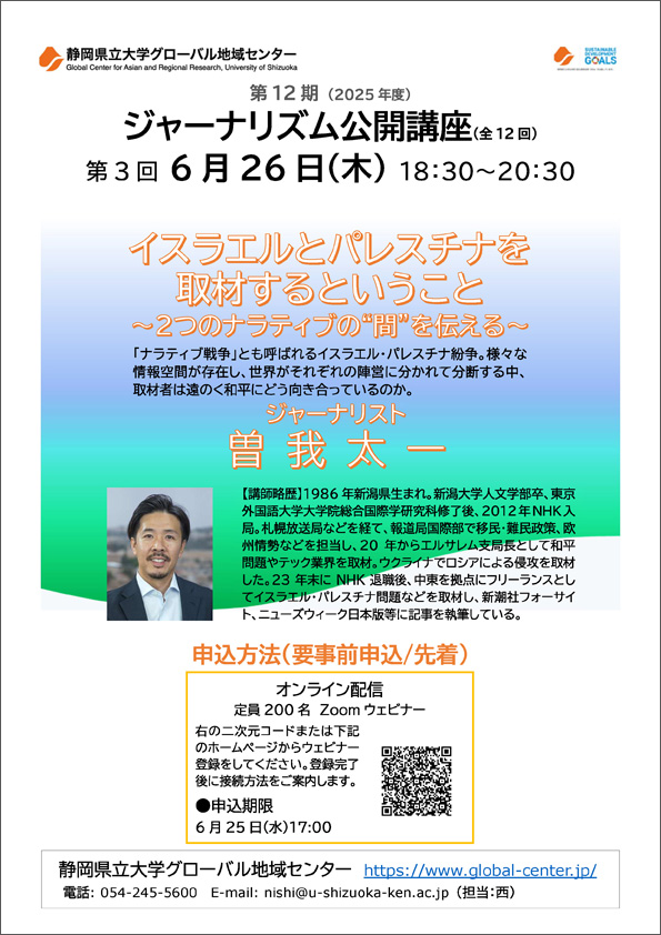 静岡県立大学ジャーナリズム公開講座は令和7年度、全12回の講座を開講します。