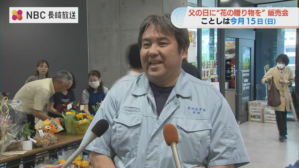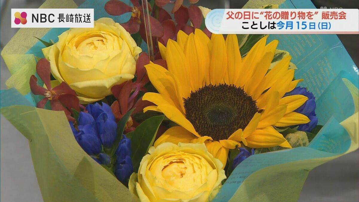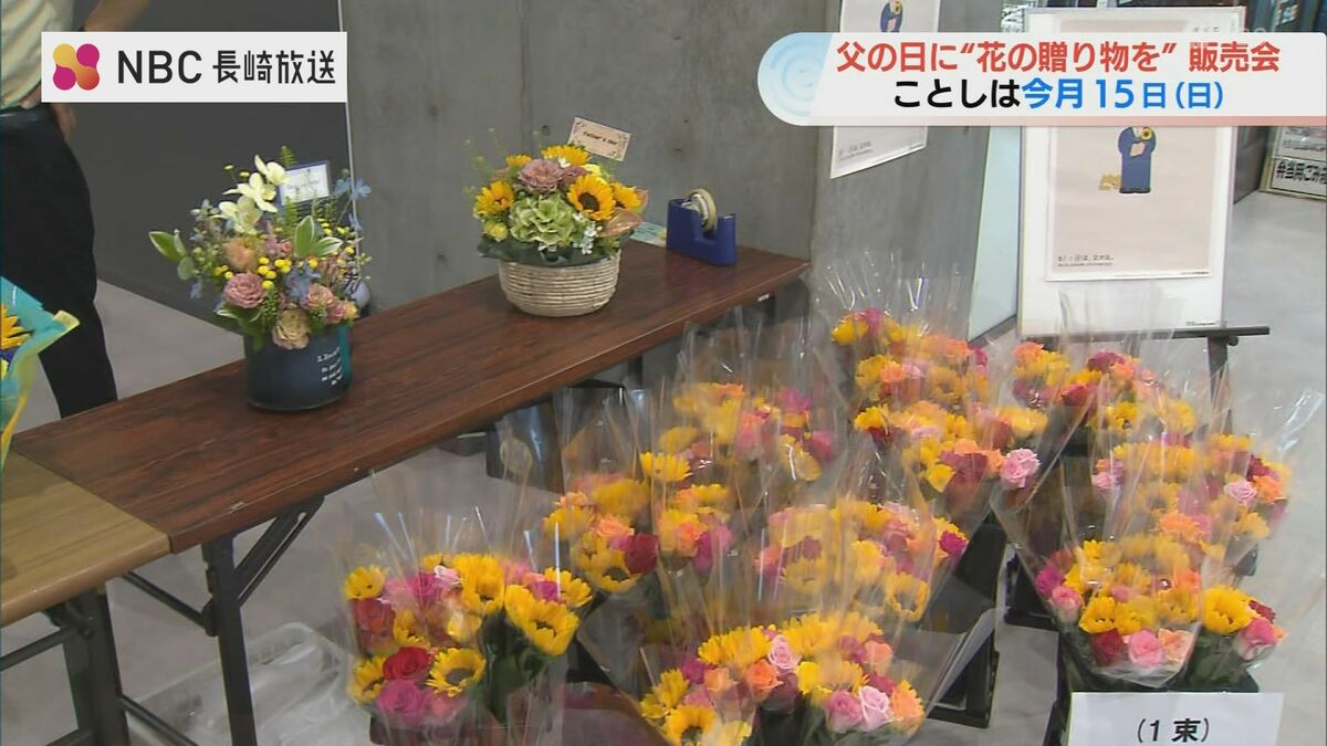 今月15日は「父の日」です。これを前に、花で感謝の気持ちを伝えてもらおうと、11日、長崎市役所でフラワーギフトの販売会が開かれました。