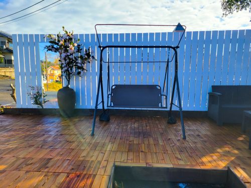 外には、ウッドデッキのテラス席もあります。暖かい日はここでゆっくり過ごしたいですね。