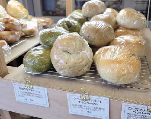 「抹茶ホワイトチョコ」、「アールグレイホワイトチョコベーグル」。