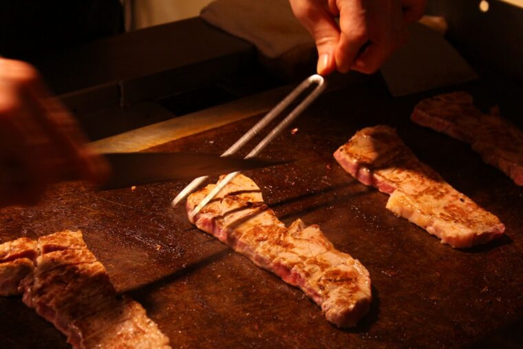 アツアツの鉄板で焼き上げられるジューシーなステーキは必食です。