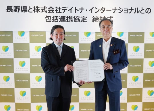 株式会社デイトナ・インターナショナル(本社: 東京都渋谷区 / 代表取締役社長CEO 佐々木 聡〈ささき あきら〉)は、長野県(知事:阿部 守一〈あべ しゅいち〉)と、2025年6月13日(金)に包括連携協定を締結いたしました。