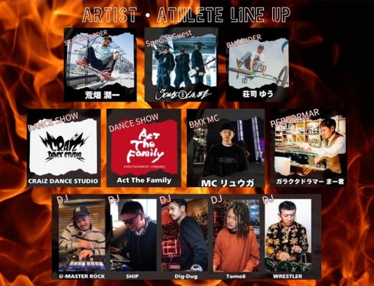 本イベントには、世界各地で注目を集める実力派アーティスト・アスリートが集結。日本の伝統楽器津軽三味線・HUMAN BEATBOX・STREET DANCEを掛け合わせた「SOME≡LINEZ」、何でも楽器にしてしまう地域出身パフォーマー「ガラクタドラマー まー君」、skateboardrider「荒畑潤一」、BMXrider「庄司ゆう」、BMX MC「MCリュウガ」、地域ダンススクール「CRAiZ dance studio」「Act The Family」も参加します。併せてクラブDJノンストップMIXも、どうぞお見逃しなく。
