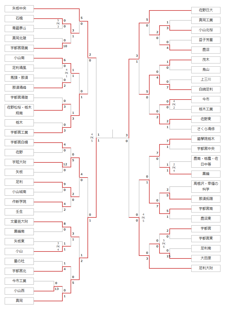 13:30 J 宇都宮南〔3部C〕 0-0(延長 0-0、PK 4-5)足利大附〔1部〕