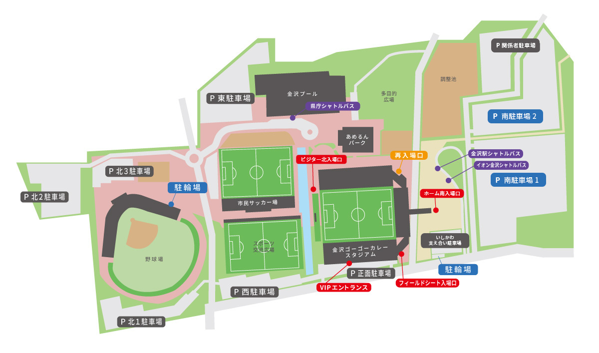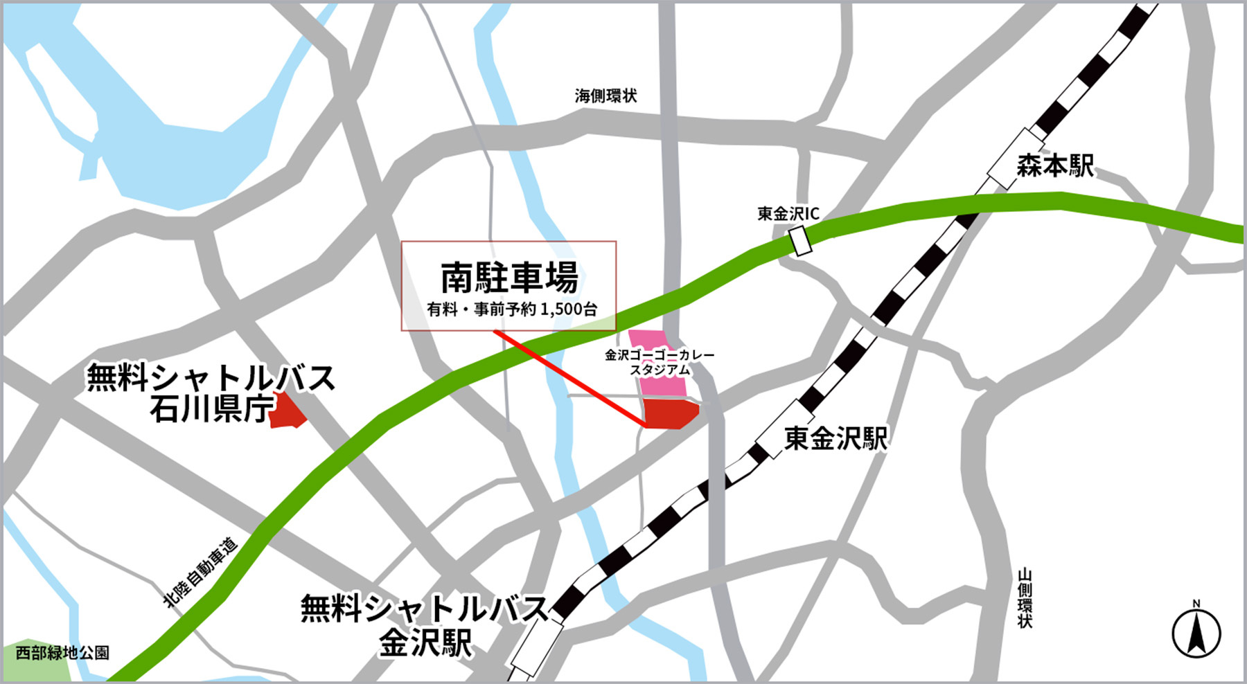 スタジアム南駐車場は、有料・事前予約制となります。Jリーグチケットにて駐車券をお買い求めください。