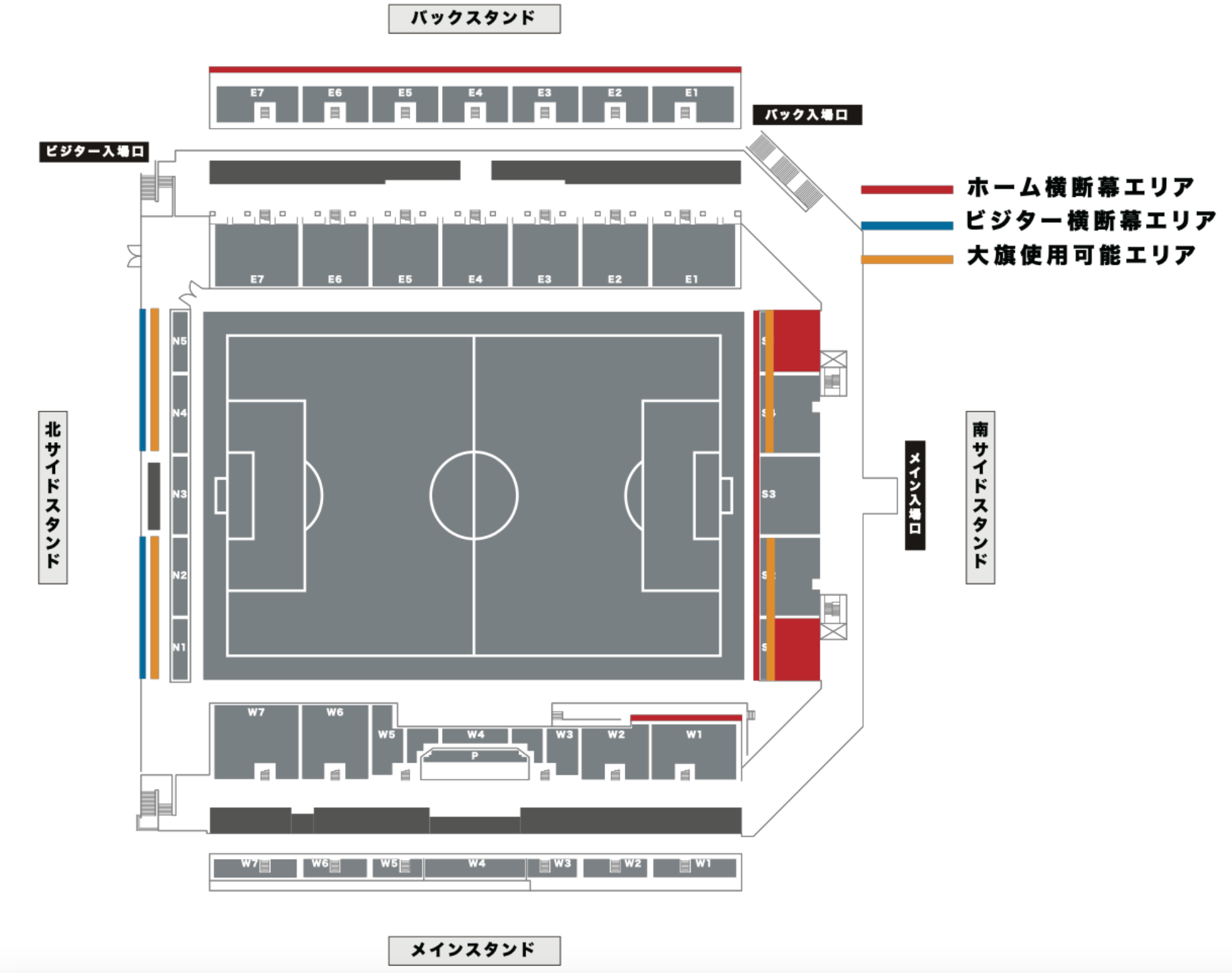 ・ビジターゴール裏立ち見自由席でのゲートフラッグの使用については、周りの方に配慮いただきながらご使用ください。