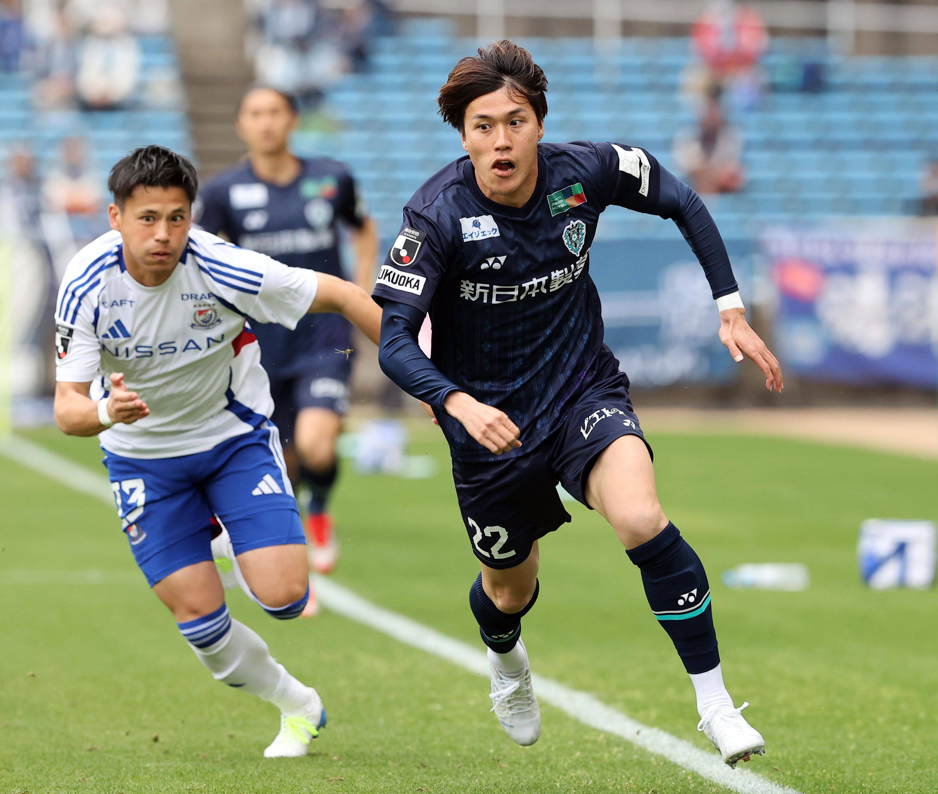 5月6日の鹿島戦で後半、競り合う松岡選手