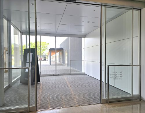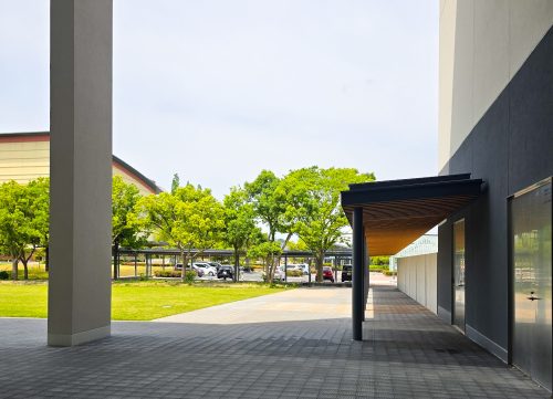 隣に立つ『鳥取県立美術館』の裏口から、「バルコス集いの森」まで、実は屋根付きの道で繋がっています。