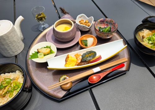 外のテラス席 (予約の方優先)で、自然の風を感じながら美味しい和食を味わいました。