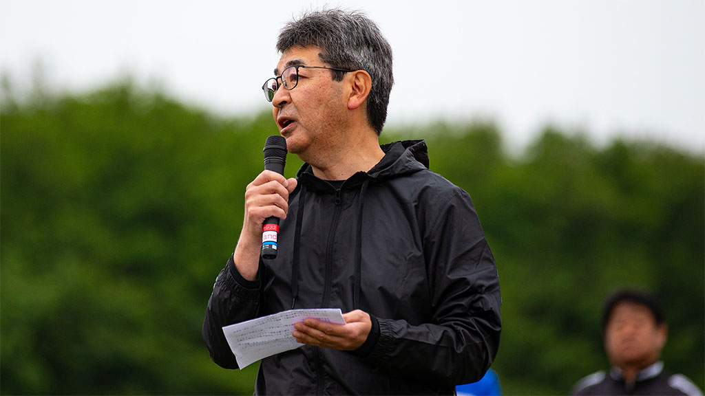 「みなさん、こんにちは。今日は朝まで雨が降っていたものの、大会が始まるころには天気も落ち着き、心地よい気候の中でRedsLand CUPを開催できたことを嬉しく思います。