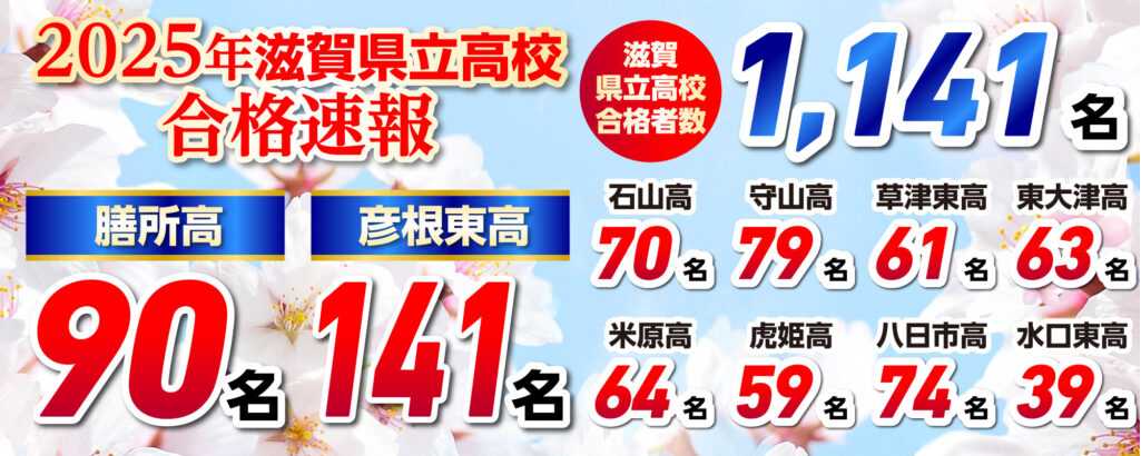 TOPΣでは、地域それぞれの入試を詳細に分析し、合格に向けた指導を行っています。TOPΣでは滋賀県下においても、中学受験・高校受験ともに顕著な合格実績を上げています。2025年度の県立高入試では、難関校である膳所高に90名、彦根東高に141名をはじめ、県立高全体では1,141名の合格者を輩出しました。高校受験に向けての準備や今後の目標設定のためにも、ぜひこの模試をご活用ください。