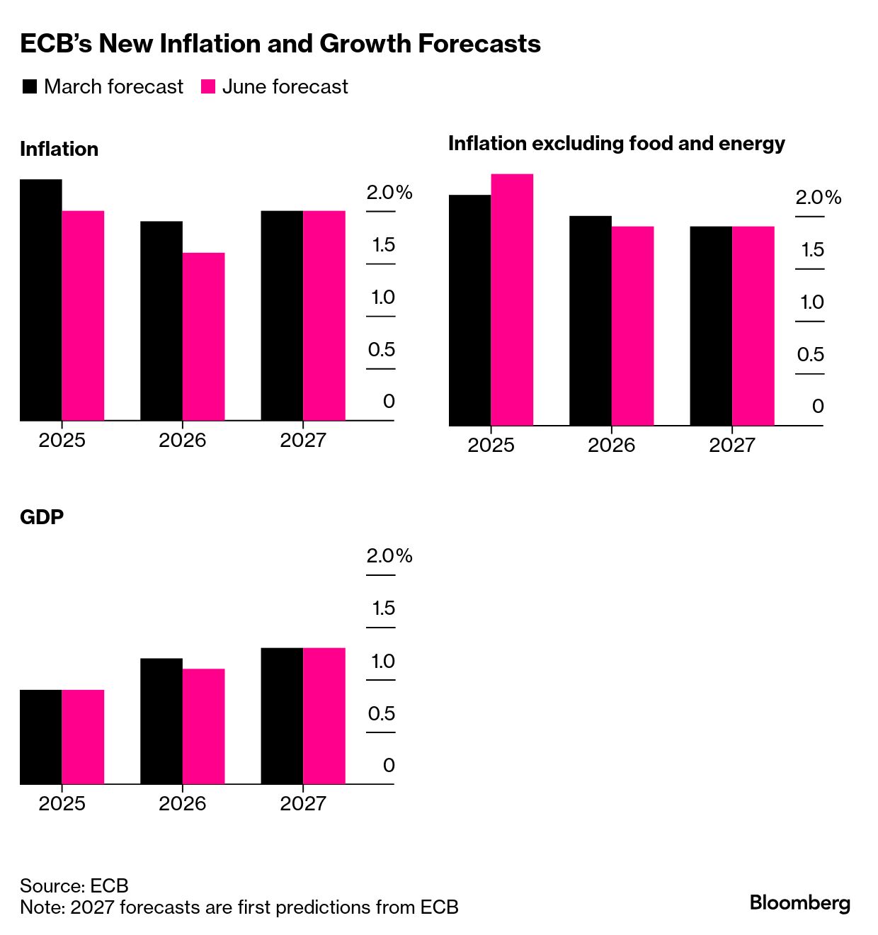 ユーロ圏のインフレ率は、5月に2%の目標をわずかに下回る水準まで鈍化し、2026年までさらに減速した後、27年には目標水準へ戻ると予想されている。